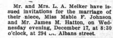 James M. Hatton was the son of Cherry (Maney) and Robert Hatton. He was born in Tennessee in approximately 1884.[xiv] James went to school in Murfreesboro, but he also worked part-time at the local lumberyard.[xv] By 1910, James had moved to Minnesota with his mother and worked as a waiter for the railway.[xvi] James likely worked to help support his mother, who was unemployed upon moving to Minnesota.